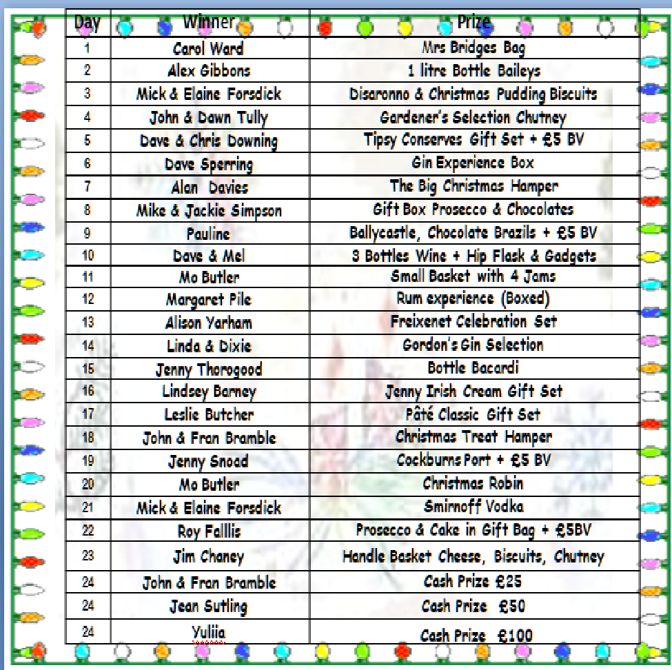 Last updated   11/1/26   21:53   by   Webmaster: Peter Rowlinson 2 Christmas Advent Draw 2025